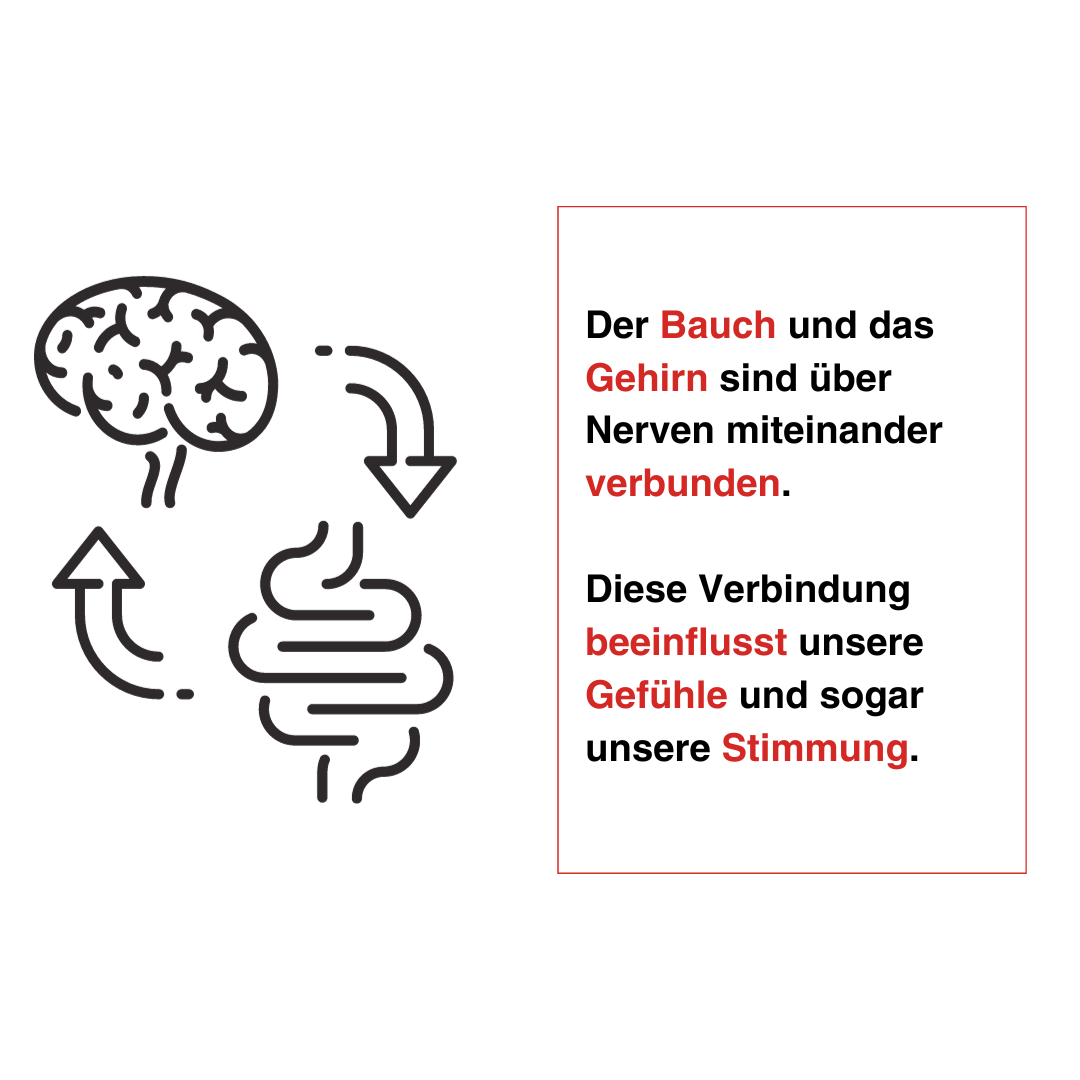 Forschung zeigt zudem, dass der Bauch einen maßgeblichen Einfluss auf Emotionen und Wohlbefinden hat. Denn der Bauch und das Gehirn sind über Nerven verbunden. Obwohl das Gehirn die Kontrolle hat, sendet der Bauch ständig Signale an das Gehirn. Diese Verbindung beeinflusst unsere Gefühle und sogar unsere Stimmung. Manchmal spüren wir das als "Bauchgefühl".