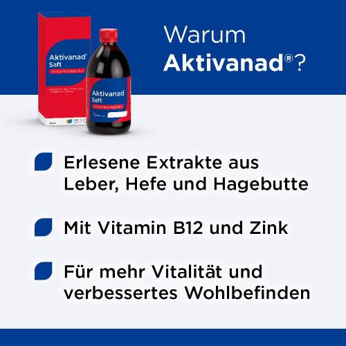 Genau hier setzt Aktivanad® Saft mit den erlesenen Extrakten aus Leber, Hefe und Hagebutte an, kombiniert in einer wohlschmeckenden und bewährten Rezeptur.