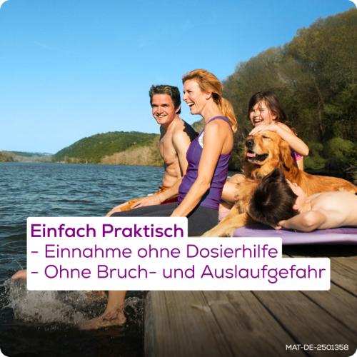 - FREI VON: Alkohol, Zucker, Laktose, Gluten, Titandioxid und tierischen Bestandteilen