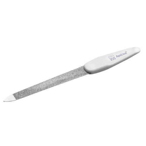 Die ApoLine® Saphir-Nagelfeilen in unterschiedlichen Größen zeichnen sich durch einen gehärteten Federstahl aus, der den Feilen eine lange Nutzungsdauer ermöglicht. Die Kanten sind glatt geschliffen und durch die spezielle Chrom-Beschichtung sind die Feilen auch für Allergiker geeignet.