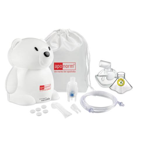 Der aponorm® Inhalator Compact KIDS, im kinderfreundlichen Eisbären-Look, hilft Ihnen spielerisch bei der täglichen Inhalation Ihres Kindes, denn er ist speziell an die Bedürfnisse von kleinen Patienten angepasst: