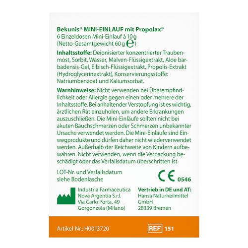 Bekunis Mini-Einlauf mit Propolax - Der natürliche Mini-Einlauf - schnell und zuverlässig bei Verstopfung. Schützt die Darmschleimhaut.