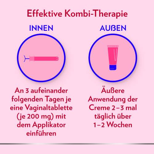·         beseitigt Pilzinfektionen der Scheide und Schamlippen durch eine Kombination aus Vaginaltabletten und Creme