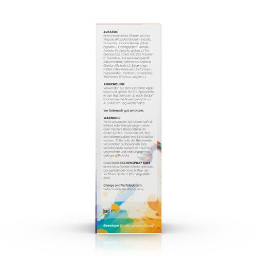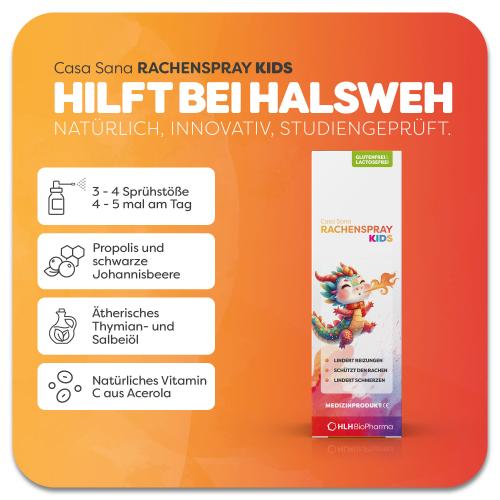 - HALSSCHMERZEN & RACHENENTZÜNDUNGEN: Casa Sana RACHENSPRAY KIDS ist ein hochwertiges pflanzliches Medizinprodukt, das für die Behandlung von Halsschmerzen und Rachenentzündungen geeignet ist