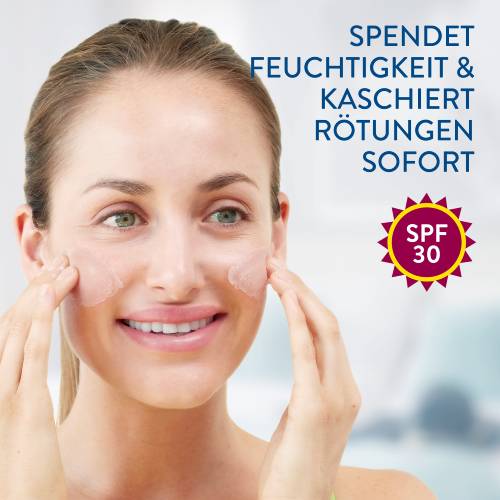Die getönte Tagespflege kaschiert Rötungen sofort und spendet Feuchtigkeit. Die Haut wird beruhigt und vor UV-bedingter Gesichtrötung geschützt.