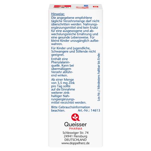 Die angegebene empfohlene tägliche Verzehrsmenge darf nicht überschritten werden. Nahrungsergänzungsmittel sind kein Ersatz für eine ausgewogene und abwechslungsreiche Ernährung und gesunde Lebensweise. Für kleine Kinder unzugänglich aufbewahren.