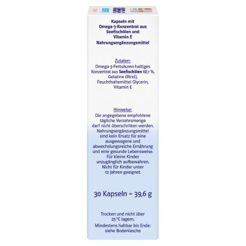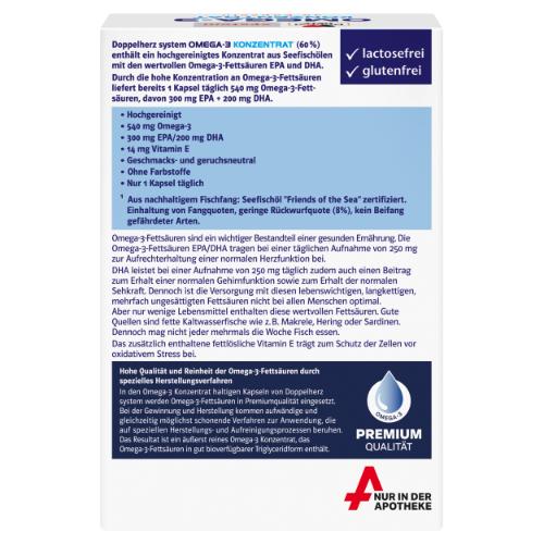Die Doppelherz system-Kapseln enthalten 900 mg Omega-3-Konzentrat aus Seefischölen, das 60 % an Omega-3-Fettsäuren enthält.