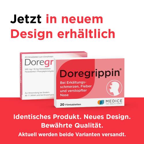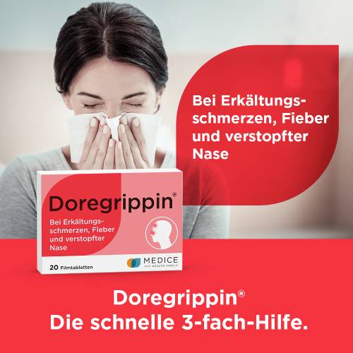 Doregrippin® - Die schnelle 3-fach-Hilfe bei Erkältungsschmerzen, Fieber und verstopfter Nase