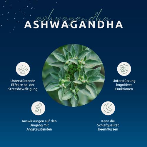 • Mit Extrakten aus Ashwagandha, Baldrianwurzel und Passionsblume