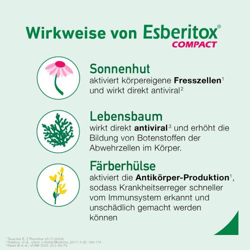 Denn: Esberitox COMPACT enthält den sogenannten Immun-Aktivkomplex von Esberitox in besonders hochkonzentrierter Form.