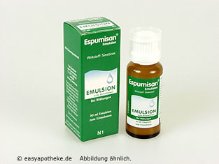 Die Espumisan Emulsion wird angewandt zur Behandlung von Beschwerden im Magen-Darmbereich durch eine übermäßige Gasbildung und Gasansammlung. Der Wirkstoff ist Simeticon. Er sorgt dafür, dass die vermehrten Gase ,die im Magen-Darmtrakt als träger, feinblasiger Schaum vorliegen, aufgelöst und von der Darmwand resorbiert werden. Besonders empfohlen wird die Espumisan Emulsion für Kinder und Säuglinge zur sanften Hilfe bei Blähungen und Dreimonatskoliken. Die Emulsion schmeckt angenehm nach Banane und wird daher von Kindern sehr gut angenommen.