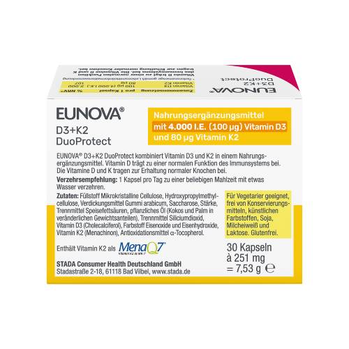 EUNOVA DuoProtect D3+K2 4000 I.E./80 μg Kapseln 30 St