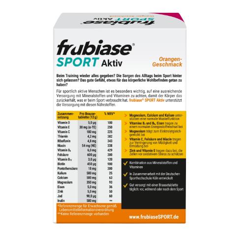 Die Frubiase Sport Brausetabletten werden zum Ausgleich des Verlustes an Vitaminen, Mineralstoffen und Spurenelementen durch das Schwitzen beim Sport angewendet. Die Brausetabletten enthalten eine ausgewogene Zusammensetzung genau dieser Nährstoffe. Ohne diese wichtigen Nährstoffe können viele verschiedene Funktionen im Körper nicht optimal ablaufen. Die im Wasser gelösten Brausetabletten können bereits während des Sports getrunken werden und verhindern so einen zu großen Verlust. Die Frubiase Sport Brausetabletten versorgen alle Sportler optimal und unterstützen eine ausgewogene Versorgung des Körpers.