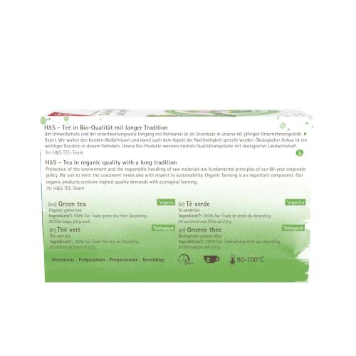 H&S Bio Grüner Tee aus Darjeeling Filterbeutel 20X2 g