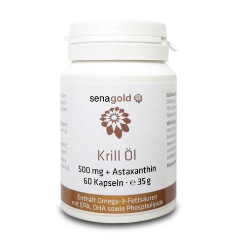 Krill-Öl 500 mg (davon Phospholipide 200 mg, Omega-3-Fettsäuren 110 mg (davon EPA 60 mg, DHA 27 mg)), Astaxanthin 50 mcg. Reinsubstanz ohne Zusatz- und Füllstoffe in der Kapsel.