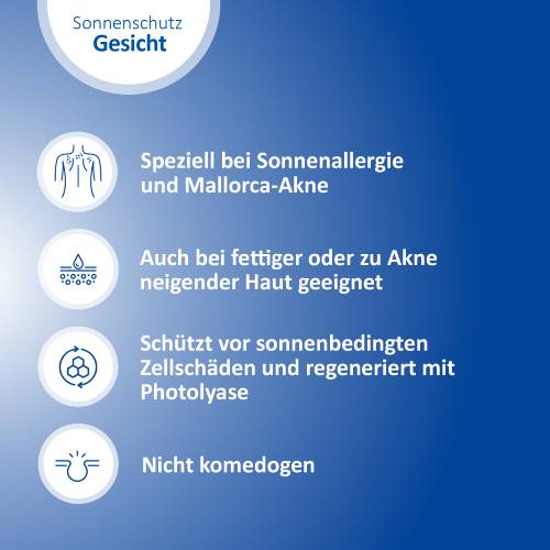 Ganzjähriger Sonnenschutz ist essenziell, da er nicht nur vor Sonnenbrand und sonnenbedingter Hautalterung schützt, sondern auch das Risiko an Hautkrebs zu erkranken reduziert. Um Menschen mit allergischer Haut optimal zu versorgen, bietet Ladival® die Allergische Haut-Serie an. Diese wurde speziell für Haut entwickelt, die zu Sonnenallergie (polymorphe Lichtdermatose/PLD) und Mallorca-Akne neigt.