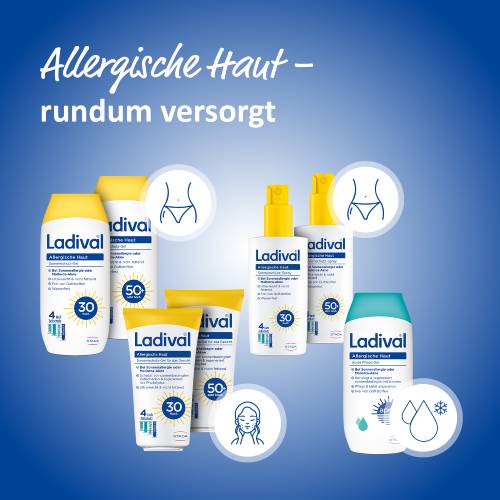 Ganzjähriger Sonnenschutz ist essenziell, da er nicht nur vor Sonnenbrand und sonnenbedingter Hautalterung schützt, sondern auch das Risiko an Hautkrebs zu erkranken reduziert. Um Menschen mit allergischer Haut optimal zu versorgen, bietet Ladival® die Allergische Haut-Serie an. Diese wurde speziell für Haut entwickelt, die zu Sonnenallergie (polymorphe Lichtdermatose/PLD) und Mallorca-Akne neigt.