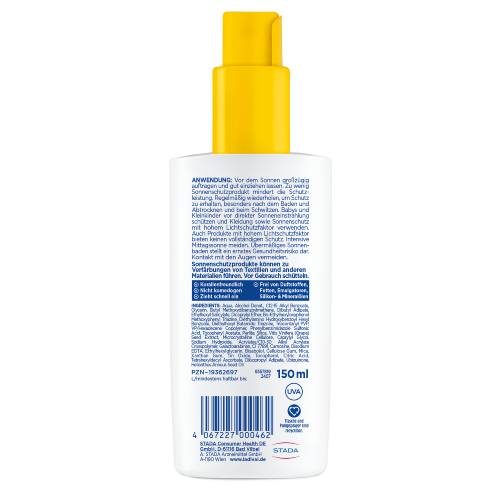 Tragen Sie das Sonnenschutz-Spray vor dem Sonnen großzügig auf und cremen Ihren ganzen Körper damit ein. Besonders gut eincremen: Nasen, Lippen, Ohren, Schultern, Dekolleté, Fußrücken und unbehaarte Kopfhaut. Um den Schutz aufrechtzuerhalten, alle zwei Stunden sowie nach dem Baden und Schwitzen nachcremen. Zu wenig Sonnenschutzmittel verringert den Lichtschutzfaktor.