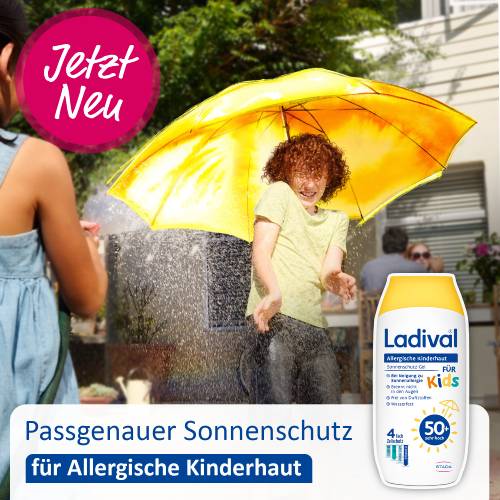Ganzjähriger Sonnenschutz ist essenziell, da er nicht nur vor Sonnenbrand schützt, sondern auch das Risiko an Hautkrebs zu erkranken reduziert. Kinderhaut ist besonders empfindlich gegenüber schädlichen UV-Strahlen und benötigt daher besonderen Schutz – vor allem, da Kinder viel Zeit im Freien verbringen. Ladival® bietet hierfür das Allergische Kinderhaut Sonnenschutz-Gel mit einem hohen Lichtschutzfaktor von 50+, speziell formuliert für die empfindliche Haut von Babys und Kindern ab 6 Monaten.