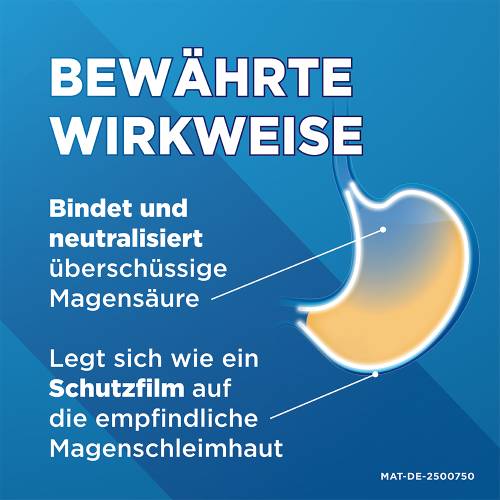 Maaloxan® ist ein sogenanntes Antazidum, das überschüssige Magensäure bindet. Die Wirkstoffe Magnesiumhydroxid und Algeldrat in Maaloxan® sind eine sinnvolle Kombination gegen saures Aufstoßen. Magnesiumhydroxid wirkt als Akuthilfe, es bindet überschüssige Magensäure und lindert so den brennenden Schmerz. Algeldrat ist Ihr aktiver Magenschutz, indem es sich wie ein Schutzfilm auf die empfindliche Schleimhaut legt und die Selbstheilung unterstützt. So hat sich Maaloxan® mit seiner Zweifach-Wirkung bei vielen Sodbrennen-Geplagten bewährt.