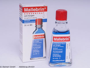 Mallebrin Konzentrat zum Gurgeln ist ein traditionelles Arzneimittel bei Entzündungen in der Mundhöhle wie zum Beispiel Entzündungen des Zahnfleisches und der Mundschleimhaut. Die blaue Lösung ist seit Jahrzehnten ein Klassiker unter den Halsschmerzpräparaten. Der Wirkstoff Aluminiumchlorid besitzt einen Gerbeffekt, welcher entzündetes Gewebe abgelöst und den Heilungsprozess so fördert. Mallebrin Konzentrat zum Gurgeln wirkt zudem antiseptisch, leicht entzündungshemmend und schmerzlindernd.