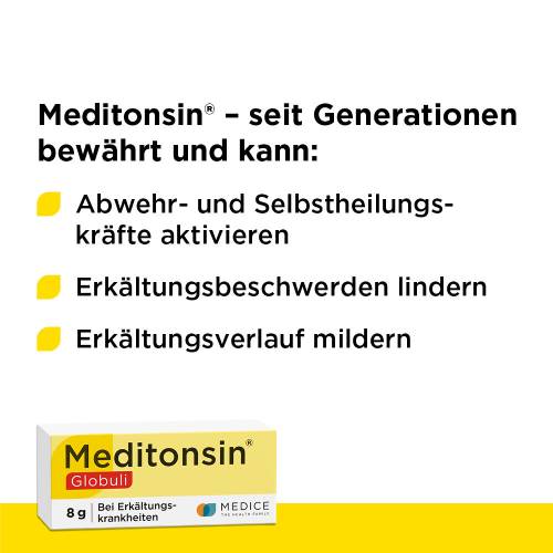 Mit einer Kombination aus drei bewährten Einzelmitteln mit synergetischem Effekt ist ein grippaler Infekt durch Meditonsin® in seinem Verlauf beeinflussbar. Das heißt: die drei natürlichen Wirkstoffe ergänzen sich in ihrer Wirksamkeit und decken ein breites Wirkspektrum ab. Zusammen bilden sie den natürlichen Tri-Komplex®, der sowohl in Meditonsin® Tropfen wie auch in Meditonsin® Globuli enthalten ist.
