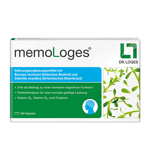 Die Basis für geistige Leistungsfähigkeit ist ausreichend Bewegung und eine ausgewogene Ernährung. Sorgen Sie also dafür, regelmäßige Sporteinheiten in den Terminkalender zu integrieren und achten Sie auf eine frische, abwechslungsreiche Kost. Zusätzlich kann eine gezielte Nahrungsergänzung sinnvoll sein. memoLoges® enthält ausgewählte B-Vitamine sowie Zink und stellt damit eine ausreichende Versorgung mit diesen neuroaktiven Nährstoffen sicher. Einzigartig macht das Präparat allerdings die Kombination wertvoller Pflanzenstoffe.