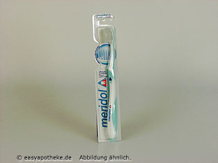 Die Meridol Zahnbürste wird zur gründlichen Reinigung der Zähne angewendet. Die Zahnbürste verfügt über mikrofeine Filamentenden, ein planes Bürstenfeld, einen kleinen Bürstenkopf und einen ergonomischen Griff. Die Filamentenden sorgen für eine effiziente Reinigung bei einem gleichzeitigen Schutz des Zahnfleisches. Das plane Bürstenfeld ist besonders für Gingivitis- und Parodontitis Patienten geeignet. Durch den kleinen Bürstenkopf können alle Zähne einfach und ohne Mühen erreicht werden. Der ergonomische Griff sorgt zugleich für eine sichere Führung. Die Meridol Zahnbürste sorgt für eine sehr gute Reinigungsleistung bei einer gleichzeitigen Schonung des Zahnfleisches.