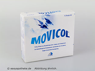 Die Movicol Beutel werden zur Behandlung von Darmträgheit und Verstopfungen angewendet. Die Beutel enthalten ein Pulver aus Macrogol und Elektrolyten. Beim Macrogol handelt es sich um ein Polyethylenglycol, welches über hohe wasserbindende Eigenschaften verfügt. Durch die Elektrolyte wird eine Verschiebung des Wasser- Elektrolythaushaltes verhindert. Durch die wasserbindenden Eigenschaften des Macrogol kommt es zu einer Erhöhung des Stuhlvolumens, wodurch die Darmbewegung angeregt wird. Die Movicol Beutel werden einfach in Wasser ausgelöst und getrunken, dabei bindet das Macrogol das Wasser an sich und befördert es zu dem verhärteten Stuhl, so dass der Stuhl aufgeweicht und die Verstopfung gelöst werden.