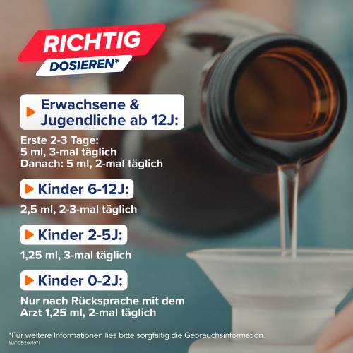 | Jugendliche ab 12 Jahren und Erwachsene | 5 ml | 2-mal täglich | zu oder unabhängig von den Mahlzeiten |