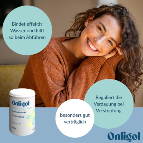 Onligol Macrogol 4000 | Bei Verstopfung | 400 g Dose | Was ist Onligol: Onligol ist ein Abführmittel als Pulver für eine Trinklösung auf Basis von Macrogol 4000. Es enthält keine Hilfsstoffe, Aromen oder Zucker. Es kann in einem beliebigen Getränk aufgelöst werden: z.B. Tee, Kräutertee, Milch, Brühe oder Fruchtsaft und verändert den Geschmack nicht. Onligol Macrogol 4000 ist in einer 400-g-Dose mit Messlöffel oder alternativ in einer Packung mit 20 Beuteln mit je 10 g Macrogol 4000 erhältlich. Anwendung: Onligol wird insbesondere bei chronischer Verstopfung angewendet. Es wird auch bei gelegentlich auftretendem unregelmäßigem Stuhlgang angewendet. Wie wird Onligol angewendet? Bitte lesen Sie die Gebrauchsinformation sorgfältig durch. Aufbewahrungshinweise: In der Originalverpackung an einem kühlen, trockenen Ort aufbewahren. Für Kinder unzugänglich aufbewahren. Das angegebene Verfalldatum bezieht sich auf das Produkt in ungeöffneter und vorschriftsgemäß gelagerter Verpackung. Wie wirkt Onligol? Onligol macht den Stuhlgang weicher, erleichtert dadurch die Entleerung und, fördert das Wohlbefinden und schafft Erleichterung. Es entfaltet seine Wirkung auf natürliche Art und Weise: Es wird im Darm nicht resorbiert oder fermentiert | Es reizt nicht die Schleimhaut | Es wird unverändert mit dem Stuhl ausgeschieden | Es verursacht keine Krämpfe, Bauchschmerzen oder Stuhldrang. Ohne Zucker.