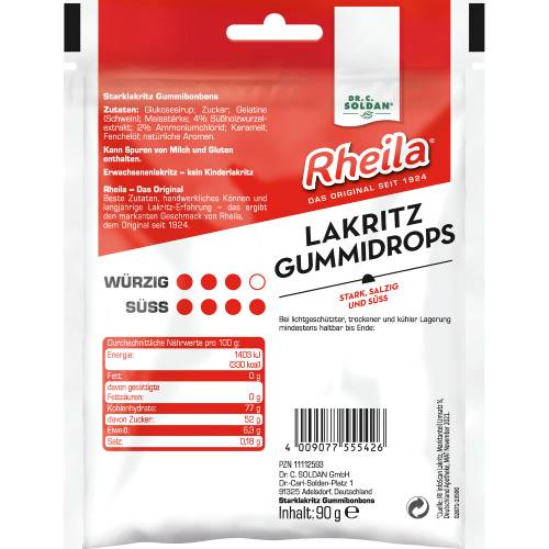 RHEILA Lakritz Gummidrops mit Zucker 90 g