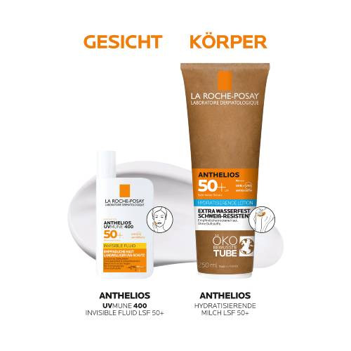 Feuchtigkeitsspendende Sonnenmilch für trockene und empfindliche Haut Die Anthelios Sonnenmilch LSF 50+ für den Körper schützt zuverlässig vor schädlichen UVA- und UVB-Strahlen. Dank Glycerin und Thermalwasser aus La Roche-Posay spendet sie bis zu 24 Stunden Feuchtigkeit. Anthelios Sonnenmilch LSF 50+ von La Roche Posay Dank Netlock-Technologie bildet die samtige Formel einen wasserfesten, sand- und schweißresistenten Schutz. Zudem verläuft, fettet sowie klebt der Sonnenschutz für empfindliche Haut nicht und hinterlässt keine weißen Rückstände. Die innovative Papp-Tube enthält FSC- oder PEFC-zertifizierte Pappanteile und spart, im Vergleich zur bisherigen Plastiktube, 45 % Neuplastik ein.