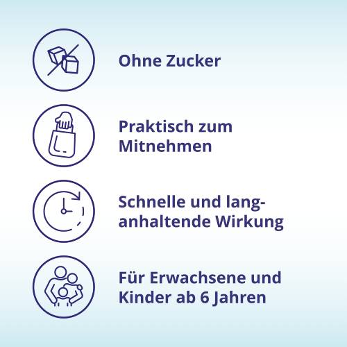 Jugendliche ab 12 Jahren und Erwachsene 1-3 Pastillen mehrmals täglich (max. 12 Pastillen pro Tag) im Abstand von 4-6 Stunden, unabhängig von der Mahlzeit
