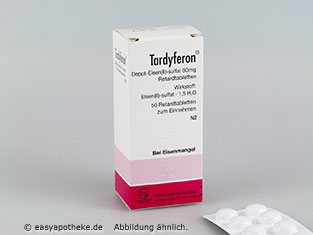 Tardyferon Retardtabletten enthalten zweiwertiges Eisen in Form von Eisen(II)-sulfat. Bei  länger bestehendem Eisenmangel empfiehlt sich die Einnahme von Tardyferon Retardtabletten. Die Freisetzung erfolgt im Darm, da wo Eisen am besten aufgenommen wird und zudem wird die Magenschleimhaut geschont. Eisen wird fast überall im Körper für die Funktion von Botenstoffen benötigt. Es ist außerdem ein wichtiger Bestandteil des roten Blutfarbstoffs Hämoglobin, der im Körper die Aufgabe hat, Luftsauerstoff aus der Lunge aufzunehmen und im Körper zu verteilen. Symptome bei einem Eisenmangel könnten Schwäche und Appetitlosigkeit, Blässe, offene Mundwinkel und Müdigkeit sein.