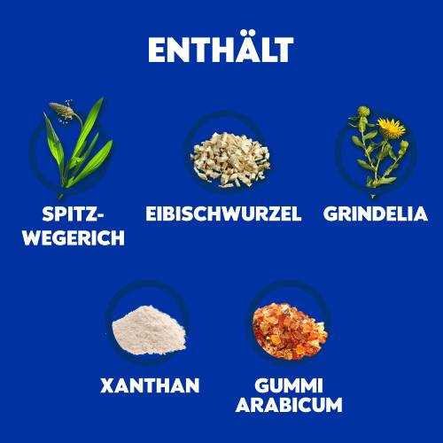 Die Zusammensetzung besteht zu 100 % aus natürlichen Inhaltsstoffen, darunter Spitzwegerich, Grindelia und Eibischwurzel, die zur Beruhigung des gereizten Rachens beitragen. Der Sirup legt sich dank der Wirkung von Xanthan und Gummi arabicum wie ein Schutzfilm auf die Rachenschleimhaut, der den Rachen vor Reizstoffen und Krankheitserregern schützt und der die Reizung des Rachens lindert, indem er befeuchtend und benetzend wirkt.