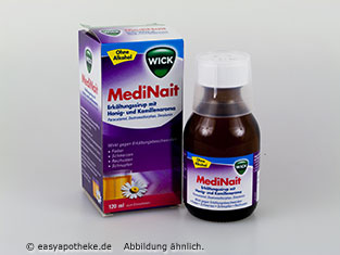 Der Wick Medi Nait Erkältungssirup wird zur Linderung der typischen Erkältungsbeschwerden während des Schlafens angewendet. Der Sirup enthält eine Kombination aus Paracetamol, Dextromethorphan und Doxylamin. Das Paracetamol verfügt über schmerzstillende, entzündungshemmende und fiebersenkende Eigenschaften. Dextromethorphan ist in der Lage den Hustenreiz zu stillen ohne den Abtransport des anfallenden Schleims zu verhindern. Beim Doxylamin handelt es sich um ein Antihistaminikum, welches die Nasenschleimhäute abschwellen lässt, den Sekretabfluss unterstützt und die Nasenatmung deutlich erleichtert. Der Wick Medi Nait Erkältungssirup hilft bei Fieber, Kopf- und Gliederschmerzen und Reizhusten.